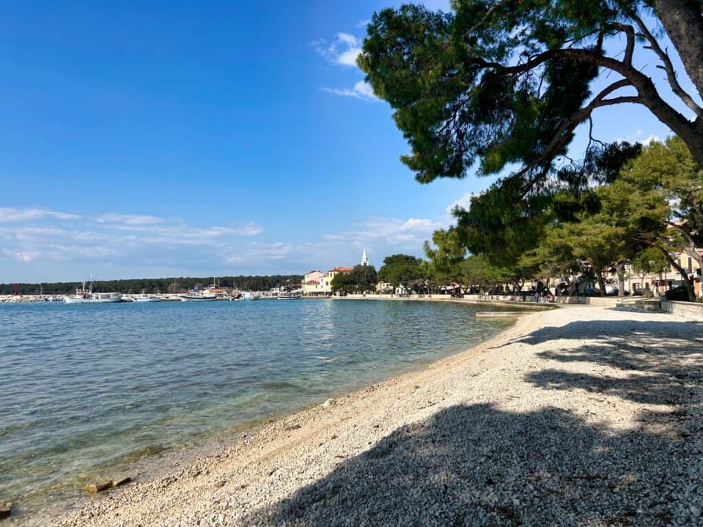 Das kleine Fischerörtchen Fažana ist ein super Ort für einen Strandurlaub. Statt kleiner Buchten, findest du hier eher lange Kiesstrände.
